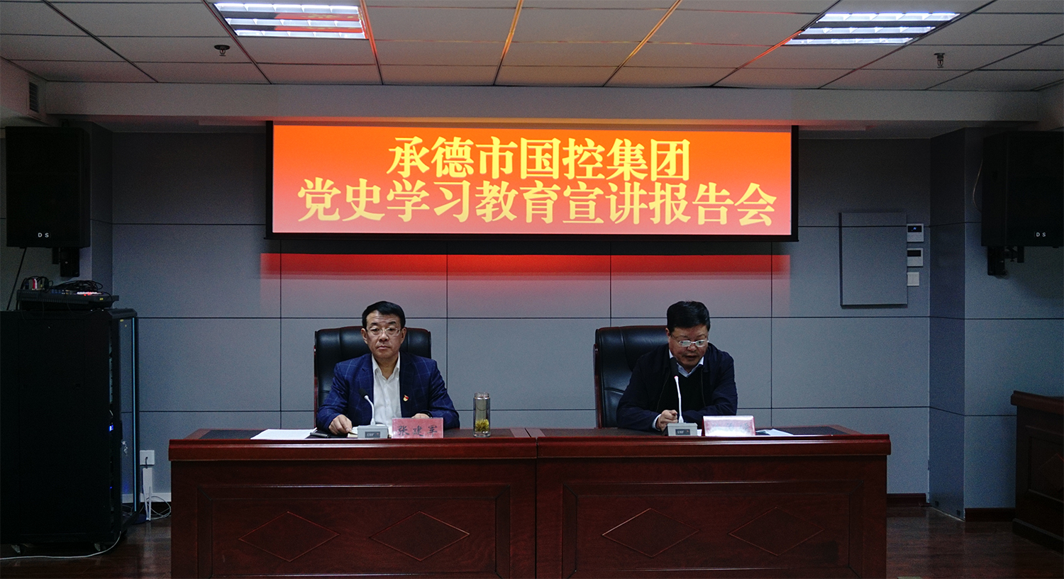 2021年4月15日,為深入推動黨史學習教育深入開展,國控集團舉辦黨史學習教育宣講報告會,集團公司黨委書記、董事長張建軍為全體黨員做宣講報告,黨委副書記、總經(jīng)理徐俊儒主持會議,領導班子全體成員、全體黨員、本部全體職工及實際控制子公司中層及以上管理人員參加會議。